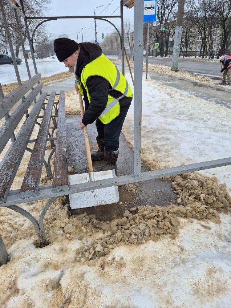 Уборка шла на улицах, тротуарах и остановках, ночью работы продолжились